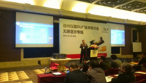 12月18日,由德州儀器主辦的DLP技術(shù)研討會(huì)之無(wú)屏顯示專場(chǎng)在深圳華僑城洲際大酒店舉行。安華光電總經(jīng)理王凡博士應(yīng)邀參加了本次研討會(huì)并就核心技術(shù)-光學(xué)模組發(fā)表了專業(yè)演講。無(wú)屏顯示生態(tài)圈的各方合作伙伴,如LED光源供應(yīng)商,多媒體智能系統(tǒng)方案商等均紛紛出席,陣容強(qiáng)大。